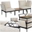Les deux fauteuils disposent chacun d'un accoudoir avec poche latérale, parfait pour ranger des livres ou des collations. Le salon est complété par une table fonctionnelle qui peut être placée à deux hauteurs différentes entre les sièges. En position basse, une surface continue est créée qui peut être utilisée comme chaise longue avec le troisième coussin.