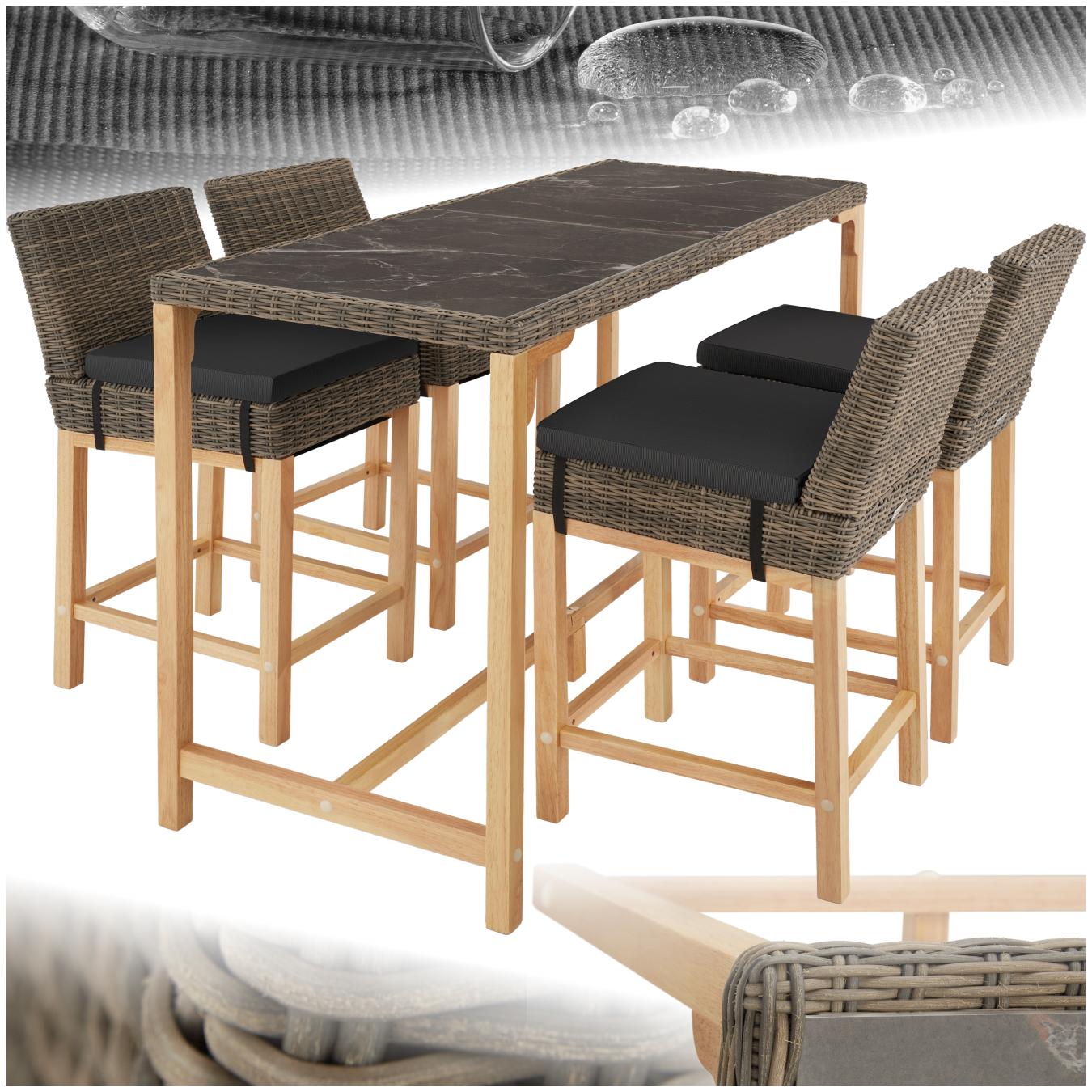 En savoir +Invitez à des fêtes de jardin conviviales avec cet ensemble de bar composé de cinq pièces, dont une table Lovas et quatre chaises Latina de tectake. La plaque de table attrayante à l'aspect marbré offre une surface idéale pour créer et mélanger des cocktails fruités et de délicieux long drinks. Pour un confort optimal, chaque tabouret est doté d'un large dossier, d'un repose-pieds confortable et d'un grand coussin d'assise. En plus de ses détails raffinés et esthétiques, cet ensemble d'extérieur facile à entretenir possède une bonne capacité de charge, une grande résistance et une longue durée de vie - de quoi trinquer sereinement !