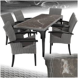 Ensemble table en rotin avec 6 chaises avec cadre solide gris