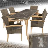 Ensemble table en rotin avec 6 chaises avec cadre solide marron naturel