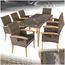 Ensemble table en rotin avec 8 chaises avec cadre robuste marron naturel