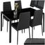 En savoir +Vous recherchez un ensemble au design élégant pour votre salle à manger ? Choisissez cette table et ces chaises au style épuré et moderne ! Les quatre sièges avec un haut dossier se distinguent par leur grand confort d'assise, leur matière synthétique résistante et leur facilité de nettoyage. Le plateau en verre de sécurité de la table lui confère une grande résistance. La table et les sièges sont stables et robustes. Des embouts silencieux en plastique évitent d'abimer le sol et atténuent le bruit. De par sa légèreté, vous pouvez facilement déplacer cet ensemble où vous le souhaitez.