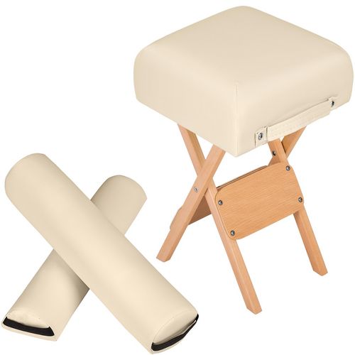 Ensemble tabouret pour table de massage avec 2 coussins de massage en bois solide et cuir synthétique beige