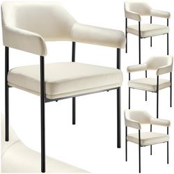 Fauteuil rembourré Aspect velours blanc cassé Lot de 4