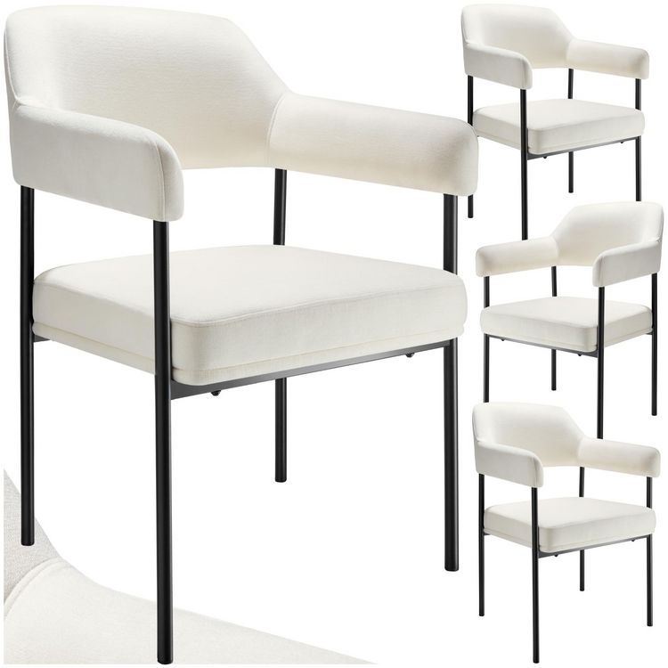 Fauteuil rembourré Tissu blanc cassé/noir Lot de 4