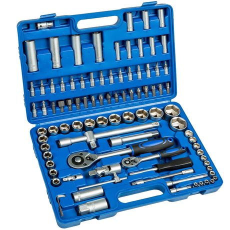 Kit, Set, Coffret, Boîte, Valise à Outils avec 94 Pièces Acier Chrome Vanadium Bleu TECTAKE. Cette valise contient un grand choix de différentes clés à cliquet ou de clés à douille et d'embouts. Idéal pour les bricoleurs et les professionnels. Les outils sont en grande partie en acier chrome vanadium robuste et répondent aux plus fortes exigences. Les différentes clés et différents outils se rangent simplement dans un coffret en plastique stable.