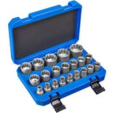 - 21 Clés à douille pour vis à denture multiple 12 pans ½ pouce (8, 9, 10, 11, 12, 13, 14, 15, 16, 17, 18, 19, 20, 21, 22, 24, 27, 30, 32, 34, 36 mm).