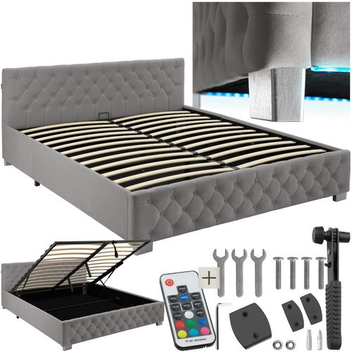 Découvrez le lit rembourré confortable de tectake et créez un espace de sommeil alliant confort et style. Sa haute tête de lit permet de s'appuyer aisément pour lire ou regarder la télévision, tout en garantissant un confort optimal. Le délicat revêtement en velours procure une douceur incomparable, tandis que le capitonnage de style Chesterfield apporte une touche de luxe.