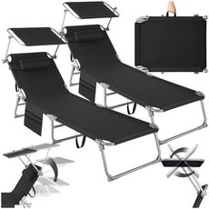 - Lot de 2 bains de soleil pliables extrêmement confortables avec oreiller amovible