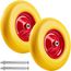 Lot de 2 roues pour brouette caoutchouc plein en caoutchouc plein avec jante en acier jaune