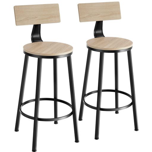 Lot de 2 tabourets de bar avec grands dossiers confortables Bois clair industriel, Chêne Sonoma