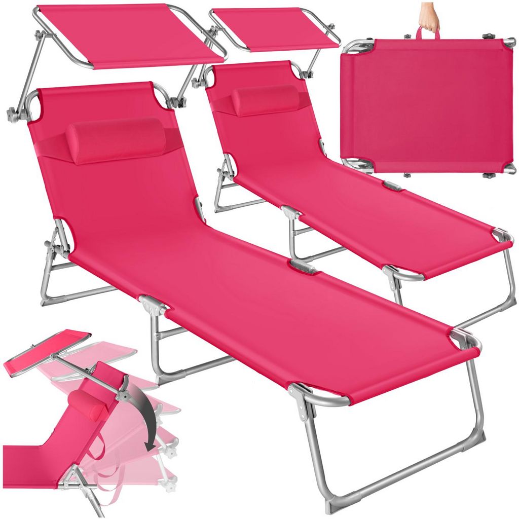 Lot de 2 transats de jardin en acier pliable rose vif