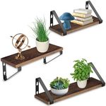 Lot de 3 étagères murales design style industriel Bois foncé industriel, rustique