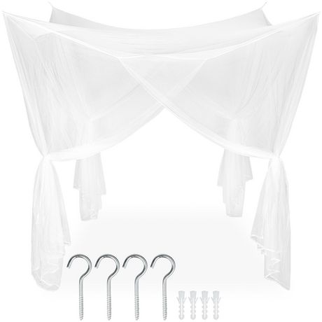 En savoir +Filet, Moustiquaire pour Lit en Polyester, Anti Moustiques Insectes 220 cm x 220 cm x 210 cm Blanc TECTAKE. Avec cette moustiquaire pratique, protégez-vous de manière optimale contre les moustiques nuisibles et autres insectes dans votre chambre. Vous passerez ainsi de bonnes nuits de sommeil. Le baldaquin peut être utilisé pour un lit simple, ainsi que pour un lit double. Il dispose d'un filet de mailles particulièrement petites, formé de 156 trous selon la recommandation de l'OMS et assure une circulation optimale de l'air. Le filet est fixé par 4 boucles cousues aux crochets, compris dans la livraison. Pendant la journée, le filet peut être retenu avec les rubans fournis, ce qui donne un aspect visuel esthétique à la pièce.