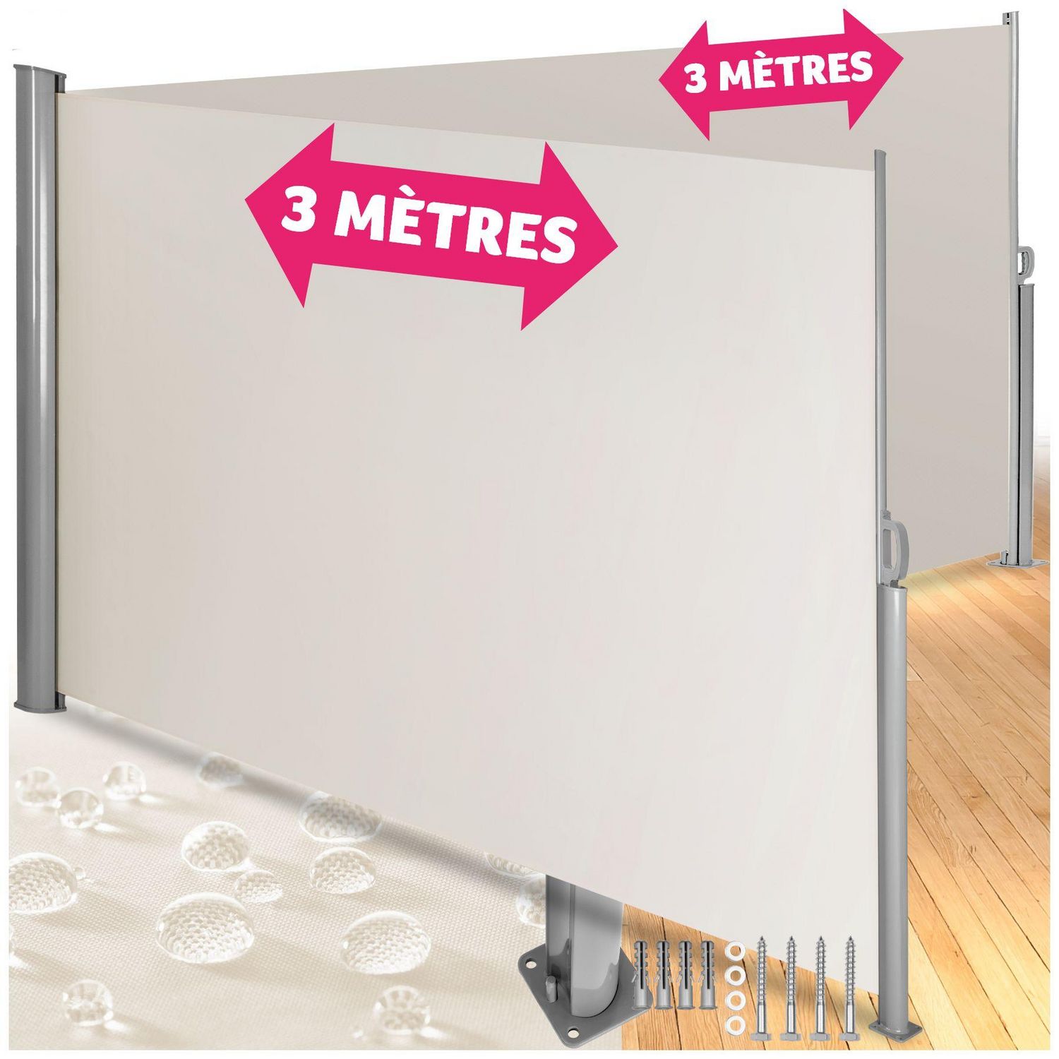 En savoir +Paravent, Brise Vue, Store Latéral Vertical Rétractable Double Balcon Jardin Terrasse + Fixations TECTAKE. Gardez vos invités à l'abri du vent, du soleil et des regards indiscrets grâce à ce Double Paravent. Ce Brise Vue résistant peut être installé sur votre Terrasse, dans votre Jardin ou sur votre Balcon pour créer un espace convivial. Ce Double Store Latéral extensible jusqu'à 6 m est muni de Poignées pour faciliter son utilisation.