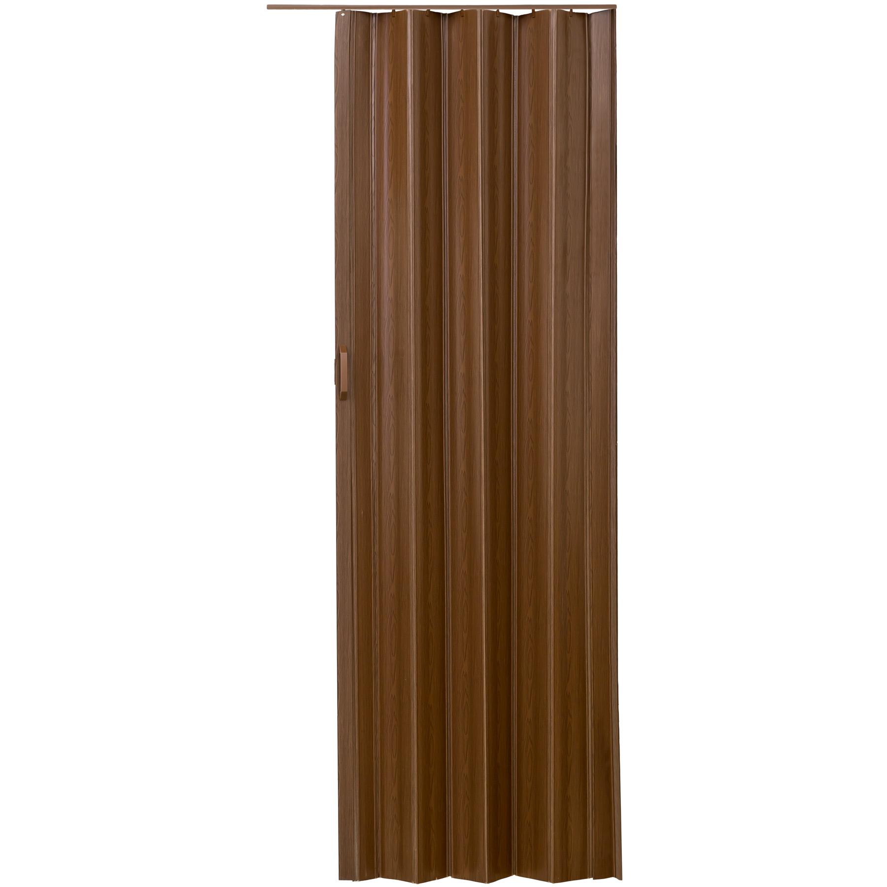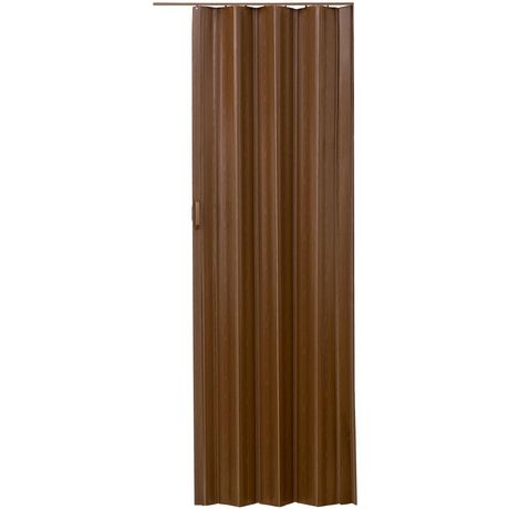 Porte accordéon profil à double paroi avec poignée coulissante marron teck