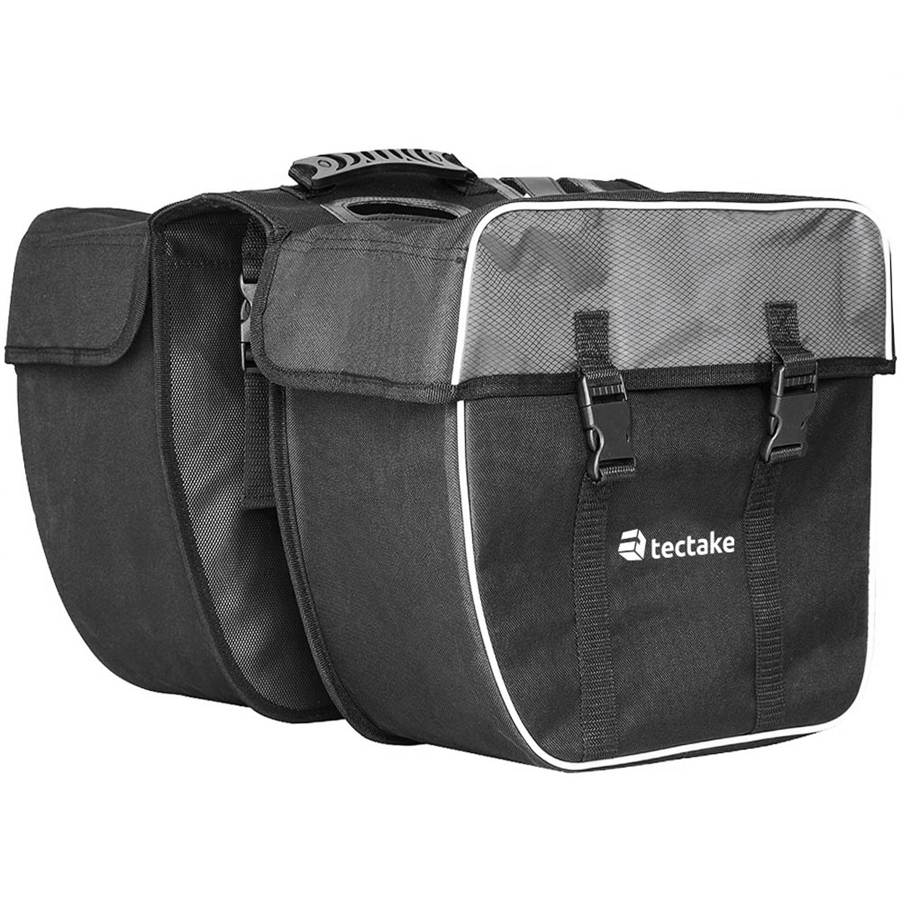 En savoir +Sacoche de vélo 35 litres pour porte bagages arrière avec bandes réfléchissantes, Imperméable - 34 cm x 17 cm x 30 cm - Noir TECTAKE. Celle sacoche de vélo pratique et spacieuse, conçu pour le porte bagage, offre une grande contenance et protège efficacement vos différents objets durant leur transport. Les réflecteurs situés sur le devant et sur les côtés permettre d'être facilement vu jour et nuit et vous assure une meilleure sécurité.