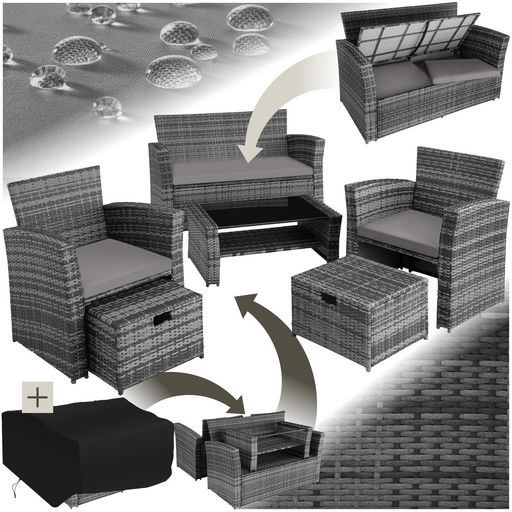 Une des caractéristiques les plus pratiques du salon de jardin MODENA est sa facilité de rangement. Les fauteuils et tabourets peuvent être disposés de manière compacte pour un rangement efficace. De plus, une housse de protection est fournie pour augmenter la longévité de votre mobilier extérieur.