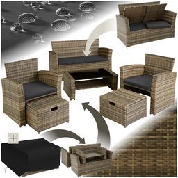 Une des caractéristiques les plus pratiques du salon de jardin MODENA est sa facilité de rangement. Les fauteuils et tabourets peuvent être disposés de manière compacte pour un rangement efficace. De plus, une housse de protection est fournie pour augmenter la longévité de votre mobilier extérieur.