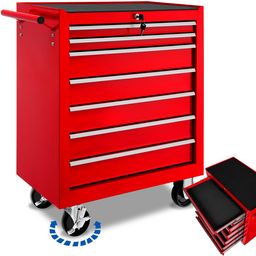 Servante d'atelier 7 tiroirs spacieux verrouillables avec tapis antidérapant rouge