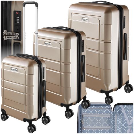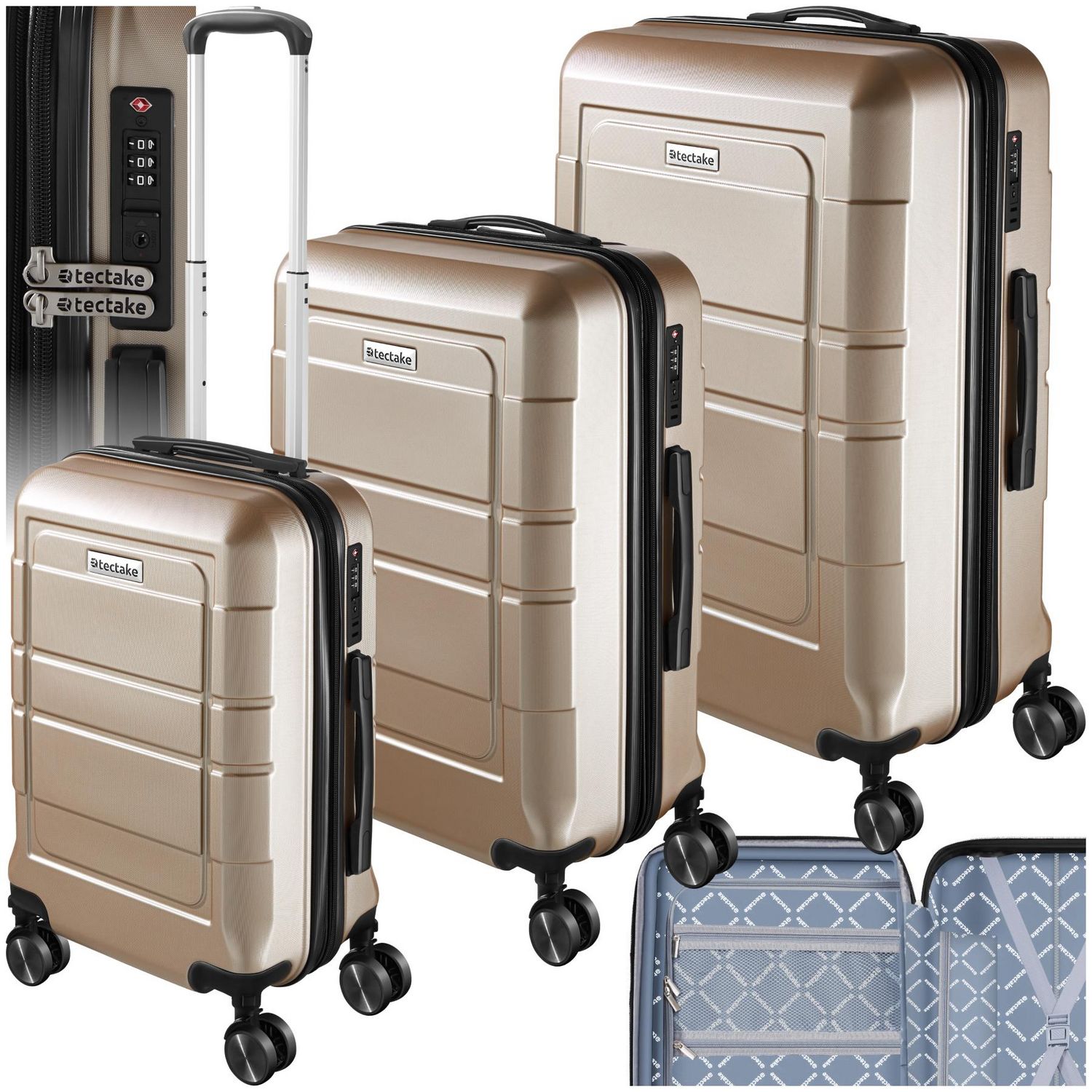 Set de valises de voyage 3 pièces en plastique ABS robuste avec revêtement en polycarbonate champagne