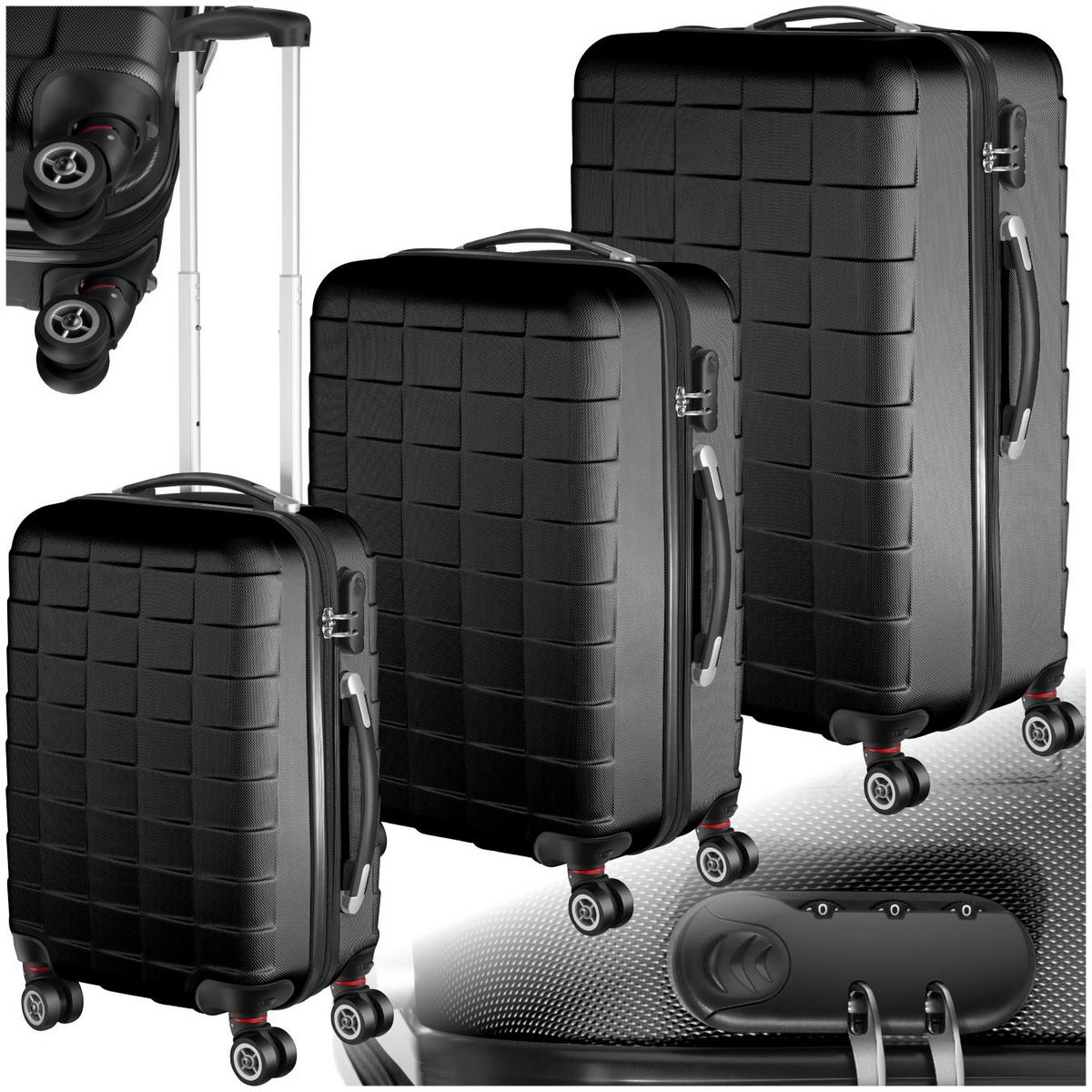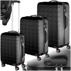 Set de valises rigides 3 parties, en plastique ABS robuste noir