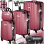 Set de valises rigides 4 pièces, 3 Trolleys, 1 Vanity case, Balance et étiquette bagages inclus rouge bordeaux
