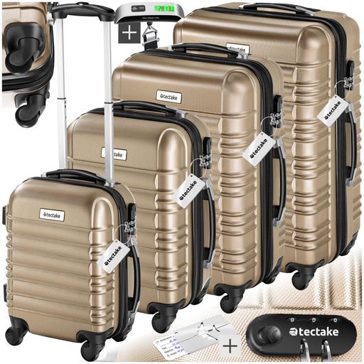 Set de valises rigides 4 pièces en plastique ABS robuste, pèse-bagages et une étiquette de valise incluses champagne