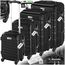 Set de valises rigides 4 pièces en plastique ABS robuste, pèse-bagages et une étiquette de valise incluses noir