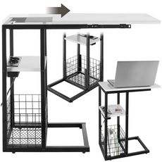 Table d'appoint pour ordinateur portable avec station de charge intégrée avec port USB et AC et plateau de table coulissant blanc