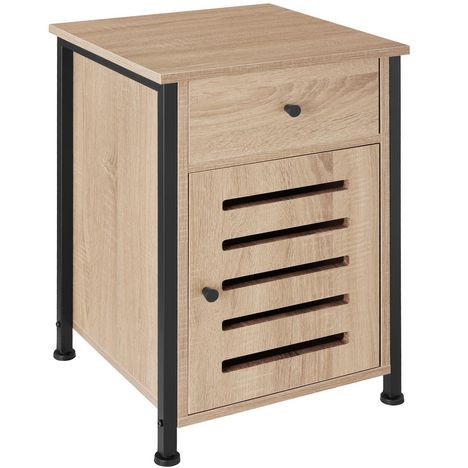 En savoir +La table de chevet rustique Waterford de tectake allie la chaleur du bois et la froideur de l'acier pour créer une combinaison distinctive inspirée du style industriel en vogue. Une étagère, un tiroir et un compartiment doté d'une étagère réglable offrent de nombreuses possibilités de présentation et de rangement. Les panneaux de particules robustes, le cadre solide et les pieds en plastique réglables en hauteur confèrent à cette construction compacte une excellente stabilité et une grande capacité de charge. Les détails charmants tels que le grain du bois et l'aspect lamellaire de la porte magnétique offrent du caractère à ce petit meuble - fonctionnelle et élégante : la table de chambre à coucher polyvalente Waterford de tectake.