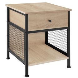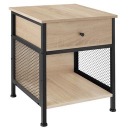 En savoir +La table de chevet Killarney est un représentant altique du style d'habitat industriel - pratique, rectiligne et pourtant pleine de charme. Réunis dans un design rectangulaire, les cadres et les surfaces grillagées en métal noir contrastent intentionnellement avec les éléments en bois plus clairs et leurs fines veinures. L'étagère, le tiroir et le compartiment de rangement offrent un espace généreux qui permet de garder les objets importants toujours à portée de main. La table d'appoint rustique Killarney de tectake s'intègre avec charme dans différents styles d'aménagement grâce à son apparence qui sait se faire remarquer sans utiliser d'ornements - le chic industriel épuré pour votre maison.
