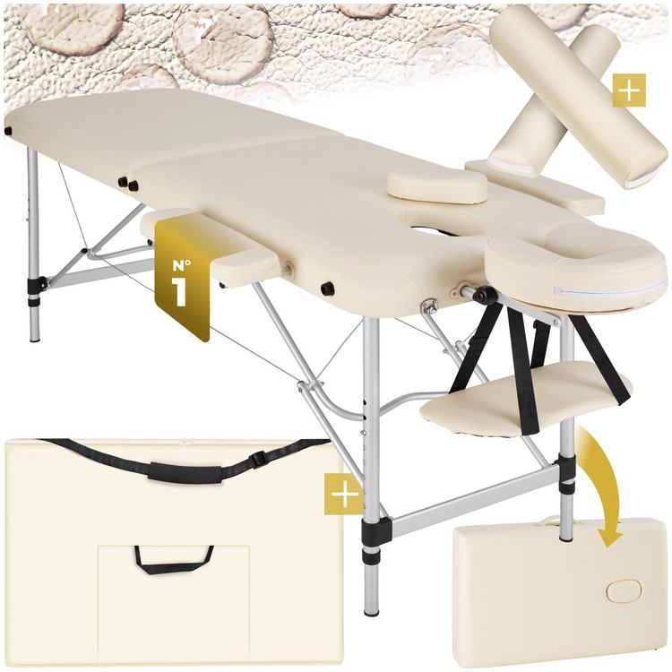 Table de massage portable pliante 2 zones largeur 61 cm et rembourrage de 4 cm beige