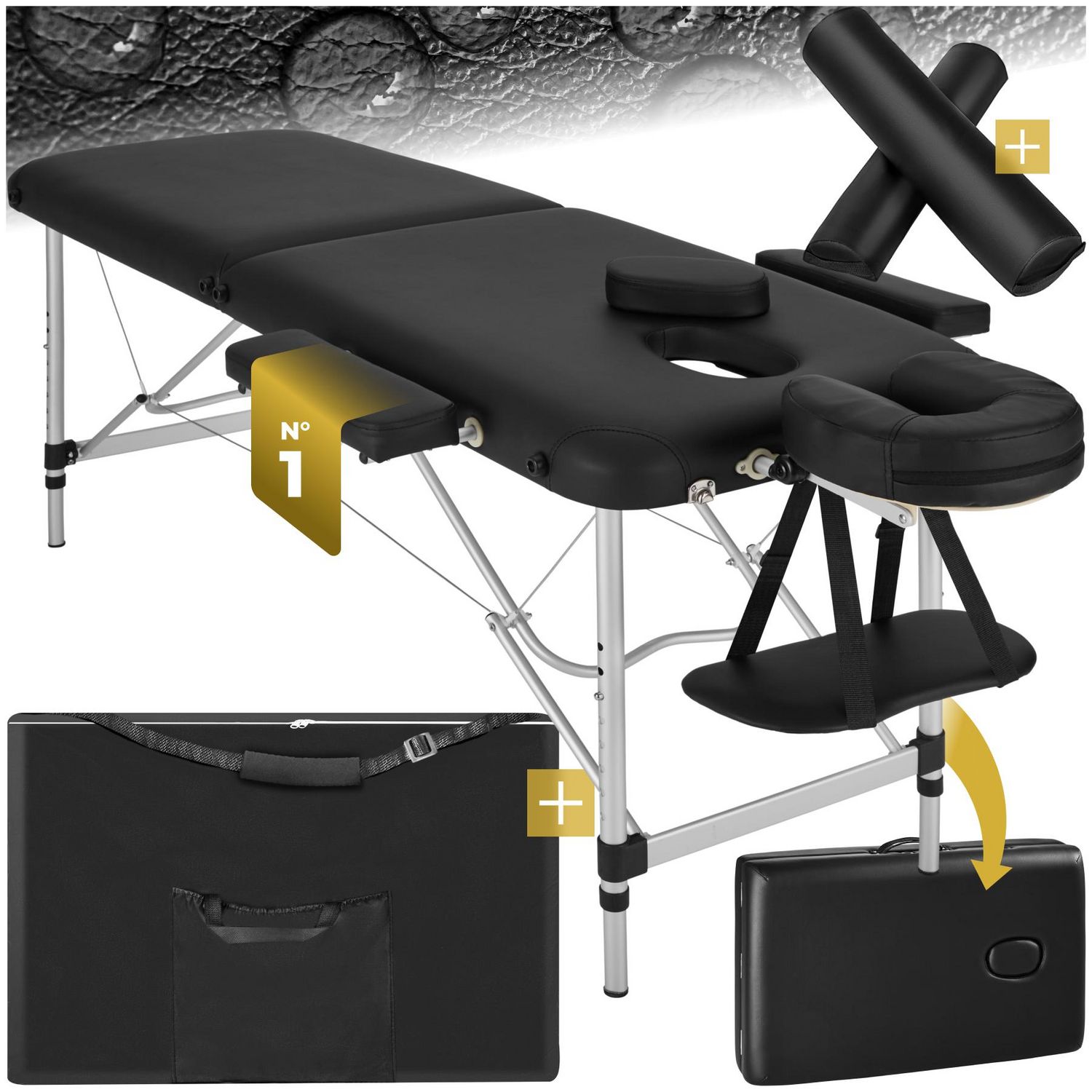 Table de massage portable pliante 2 zones largeur 61 cm et rembourrage de 4 cm noir