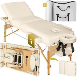 Table de massage portable pliante à 3 zones largeur 70 cm, rembourrage 7,5 cm beige