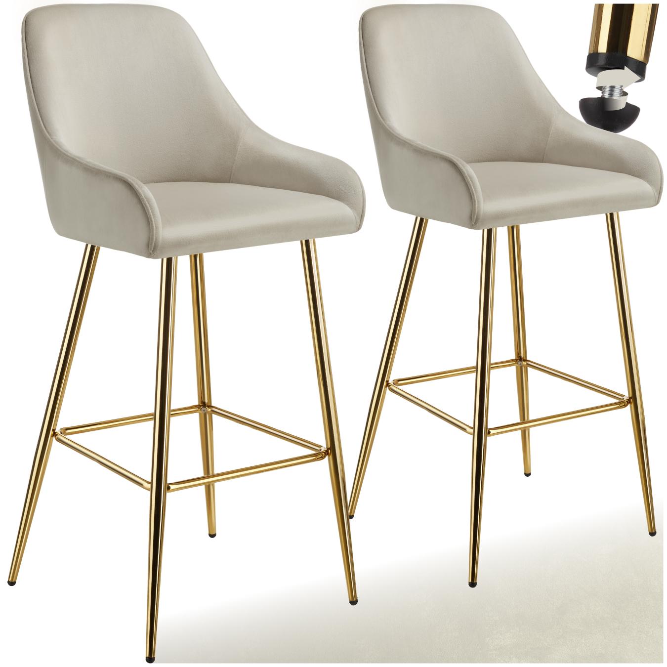 Tabouret de bar en aspect velours rembourré crème/or Ensemble de 2 pièces