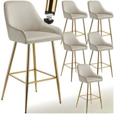 Tabouret de bar en aspect velours rembourré crème/or Ensemble de 6