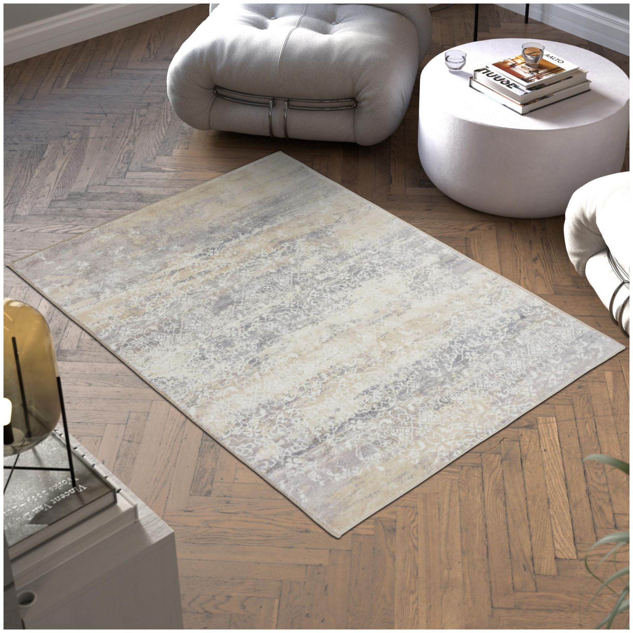 Tapis design vintage à poils courts en laine synthétique et feutre beige 120 x 170 cm
