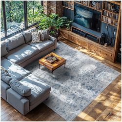 Tapis vintage design à poils courts en laine synthétique et feutre bleu 240 x 340 cm