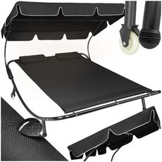 Chaise longue, Transat, Pare Soleil, 2 Places TECTAKE + 2 Coussins. Ce luxueux hamac est l'occasion la plus confortable pour des heures de détente à ciel ouvert. Que vous souhaitiez vous relaxer seul ou à deux. Points Forts: Convient aussi bien à l'intérieur qu'à l'extérieur. Housses textiles facile