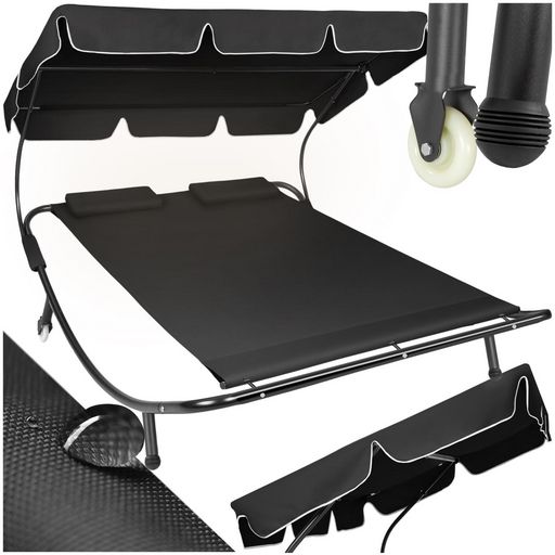 En savoir +Chaise longue, Transat, Pare Soleil, 2 Places TECTAKE + 2 Coussins. Ce luxueux hamac est l'occasion la plus confortable pour des heures de détente à ciel ouvert. Que vous souhaitiez vous relaxer seul ou à deux.