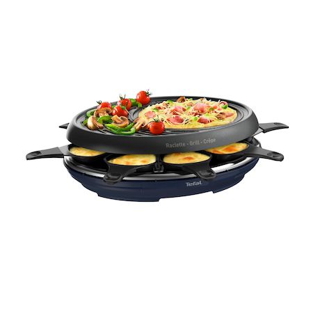 Les plus gourmands seront ravis : avec les fonctions raclette, crêpes et grill de l'appareil Raclette Tefal ! Polyvalent, l'appareil se plie en quatre pour satisfaire toutes vos envies, aussi bien pour fondre du fromage que cuire des crêpes et griller des viandes et légumes. Sa plaque au revêtement antiadhésif vous assure une cuisson parfaite sans ajout de matière grasse.votre appareil repose solidement sur son socle et régale aisément 8 personnes pour des tablées chaleureuses et de délicieux repas.