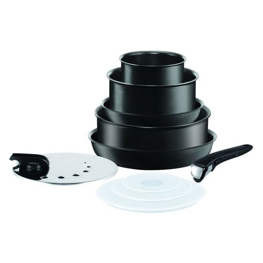 Découvrez cette batterie de cuisine de 10 pièces INGENIO PERFORMANCE signée TEFAL. Composé de 2 casseroles 16/20 cm, 2 poêles 22/26 cm, 3 couvercles en plastique 16/20/24 cm, 1 sauteuse 24 cm, 1 couvercle multi 20 24 cm et poignée Ingénio Classic noir. Ce sont toutes les qualités du rangement optimal et de l'utilisation sur plaque comme au four, dans une version pour votre cuisine au quotidien. Grâce au système de poignée amovible vous pouvez changer d'une poêle à une autre en un seul clic. Le revêtement anti-adhésif Titanium Pro dure jusqu'à 2x plus longtemps avec les deux couches anti-abrasion chargées en minéraux résistants et avec un Top Coat renforcé en particules de titane. Le Thermo-Spot (pour les poêles uniquement) devient de couleur uniforme lorsque le revêtement a atteint la température optimale de saisie des aliments. Tous feux dont induction.