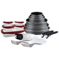En savoir +Découvrez ce set de 20 pièces INGENIO ESSENTIAL Gris. Composé de 3 casseroles 16-18-20cm, 2 poêles 24-28, 1 poêle wok 24cm, 1 sauteuse 26cm, 1 couvercle anti-gras 20 à 28cm, 3 couvercles hermétiques 16-18-20cm, 1 spatule, 1 spatule à angle Enjoy cassonade, 2 poignées ing 5 noir brut, et un set de 5 pièces KIPPER. Le revêtement Tefal nouvelle génération est renforcé en particules minérales assurant une grande durabilité et une facilité d'usage jour après jour. Les boîtes KIPPER sont conçues pour être parfaitement hermétiques avec un design moderne pensé pour un rangement optimal, couvercle flexible et facile à nettoyer.