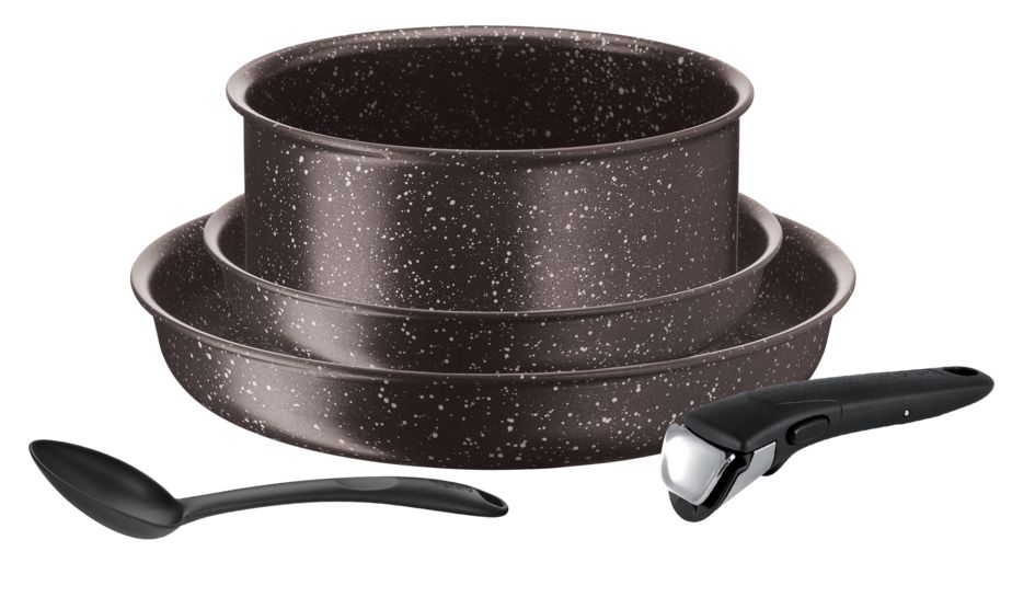En savoir +Découvrez cette batterie de cuisine en aluminium 5 pièces TEFAL, compatible tous feux dont induction INGENIO EXTREME. Cette batterie est composée de 2 poêles 22 et 26 cm, une casserole 20 cm, 1 poignée amovible et 1 cuillère. A l'extérieur, les éléments ont une belle finition marron effet pierre et possèdent un revêtement intérieur anti-adhésif pour une cuisson sans accroche.