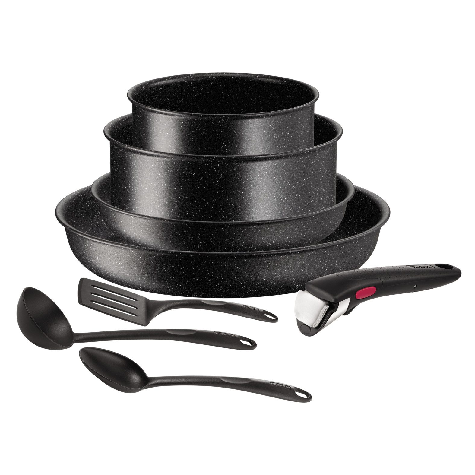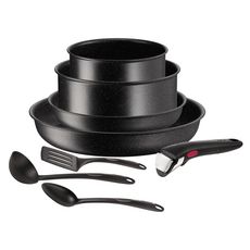 La batterie de cuisine TEFAL Darkstone 8 pièces offre une cuisson performante sur tous feux, y compris induction. Conçue en aluminium avec un revêtement antiadhésif, elle assure une cuisine saine et sans accrocs. Fabriquée en France, elle est équipée de poignées amovibles pour un rangement pratique
