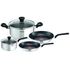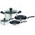 Casserole 18 cm (1,7 L) + couvercle, faitout 24 cm (4,3 L) + couvercle, 2 poêles 20 / 24 cm