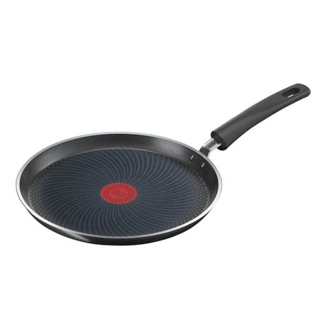 Crêpière TEFAL Start'Easy, conçue pour réaliser sans stress des crêpes et galettes toujours parfaites ! Revêtement intérieur et extérieur Titanium hautement anti-adhésif, 100% sain, sûr, durable, résistant et super facile à nettoyer. Technologie Thermo Signal indiquant la température de démarrage de cuisson idéale. Base induction Thermo Fusion pour une distribution rapide et optimale de la chaleur. Crêpière 25 cm, compatible tous feux dont induction. Fabrication Française. Une Valeur Sûre !