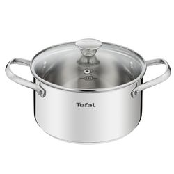 Faitout 20 cm inox tous feux dont induction avec couvercle en verre COOKEAT