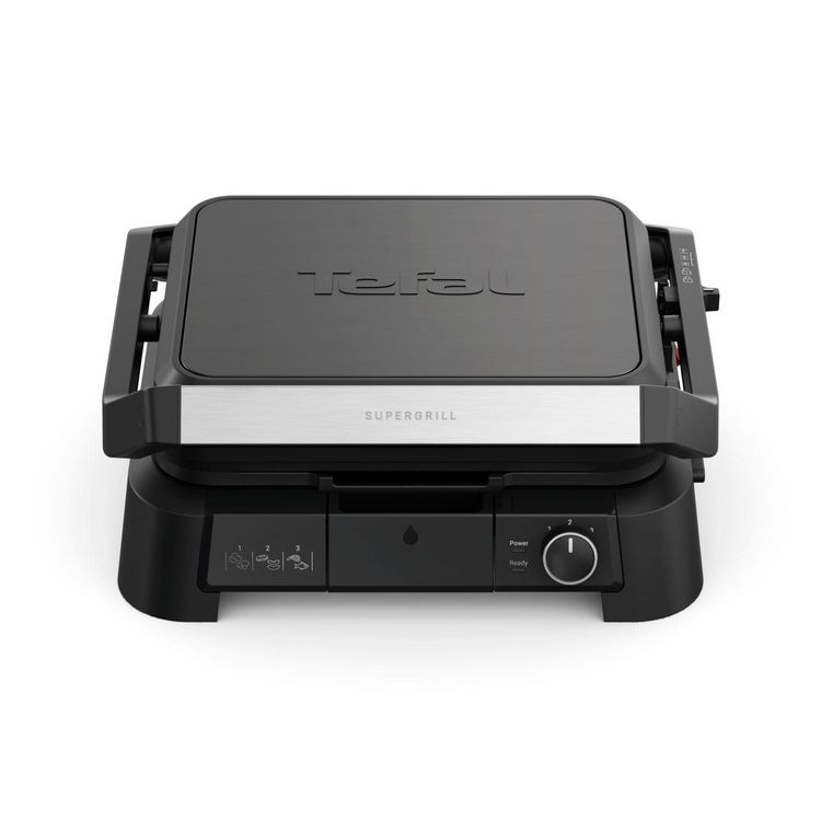 Découvrez SuperGrill 3-en-1, le gril 3-en-1 qui peut être utilisé comme barbecue et comme four ! Utilisez-le comme gril de contact pour les légumes, la viande et les paninis, ouvrez-le à 180° pour le transformer en barbecue ou utilisez la position four pour faire griller vos aliments sans les écraser, ou pour réchauffer des restes. Le thermostat réglable offre la température parfaite pour tous les types d'ingrédients, comme la viande, le poisson, les légumes, les paninis et bien plus.